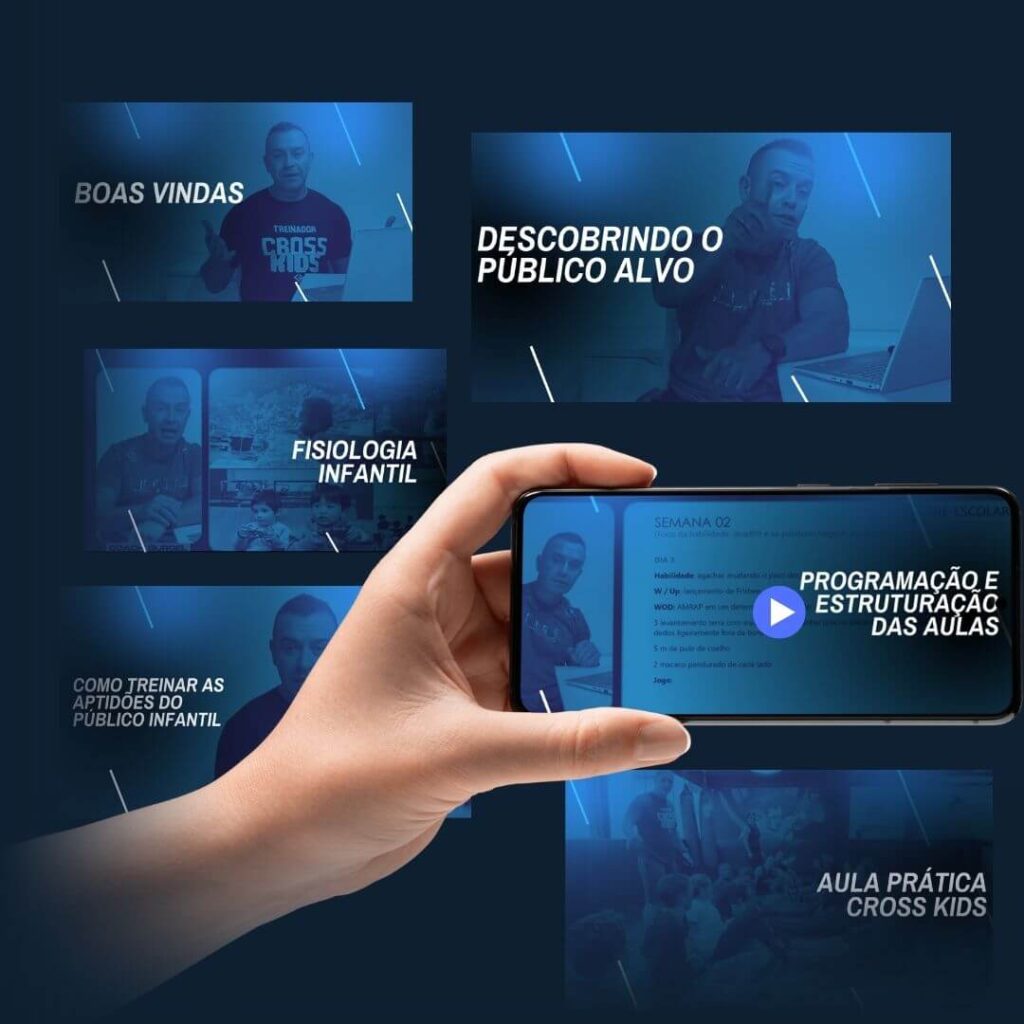 22 Aulas gravadas ensinando desde as bases do desenvolvimento da fisiologia infantil até aulas práticas de Cross Kids